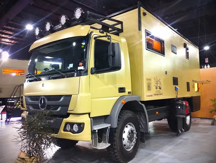 Pero el fenómeno ya no se detiene en los utilitarios. En la exposición de este año, Automotores Haedo sorprendió con unidades de mayor porte, como el Atego 1726 4×4, un camión equipado con tracción integral y caja manual de seis velocidades, que abre el juego a nuevos proyectos de motorhomes para aventureros extremos o clientes corporativos que buscan plataformas robustas para viajes de largo alcance.